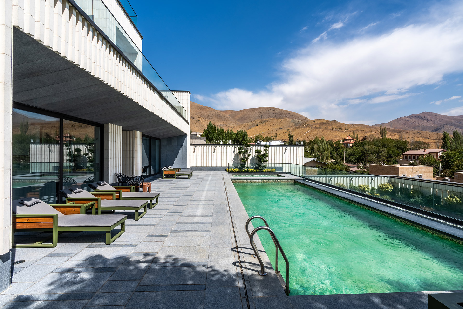 High in the hills of Rudehen, where the mountains whisper and the skies open wide, this private villa rises like a hymn to balance and light. With every clean line and textured surface, the architecture tells a story—not just of function, but of presence. Photographing this space was not merely about framing structure—it was about listening. Listening to the rhythm of shadows cast by stone fins, the hush of wind across still water, and the quiet luxury of open terraces designed for sunlight and solitude. Here, architecture becomes landscape. And through the lens, moments become memories—etched not just in image, but in feeling.